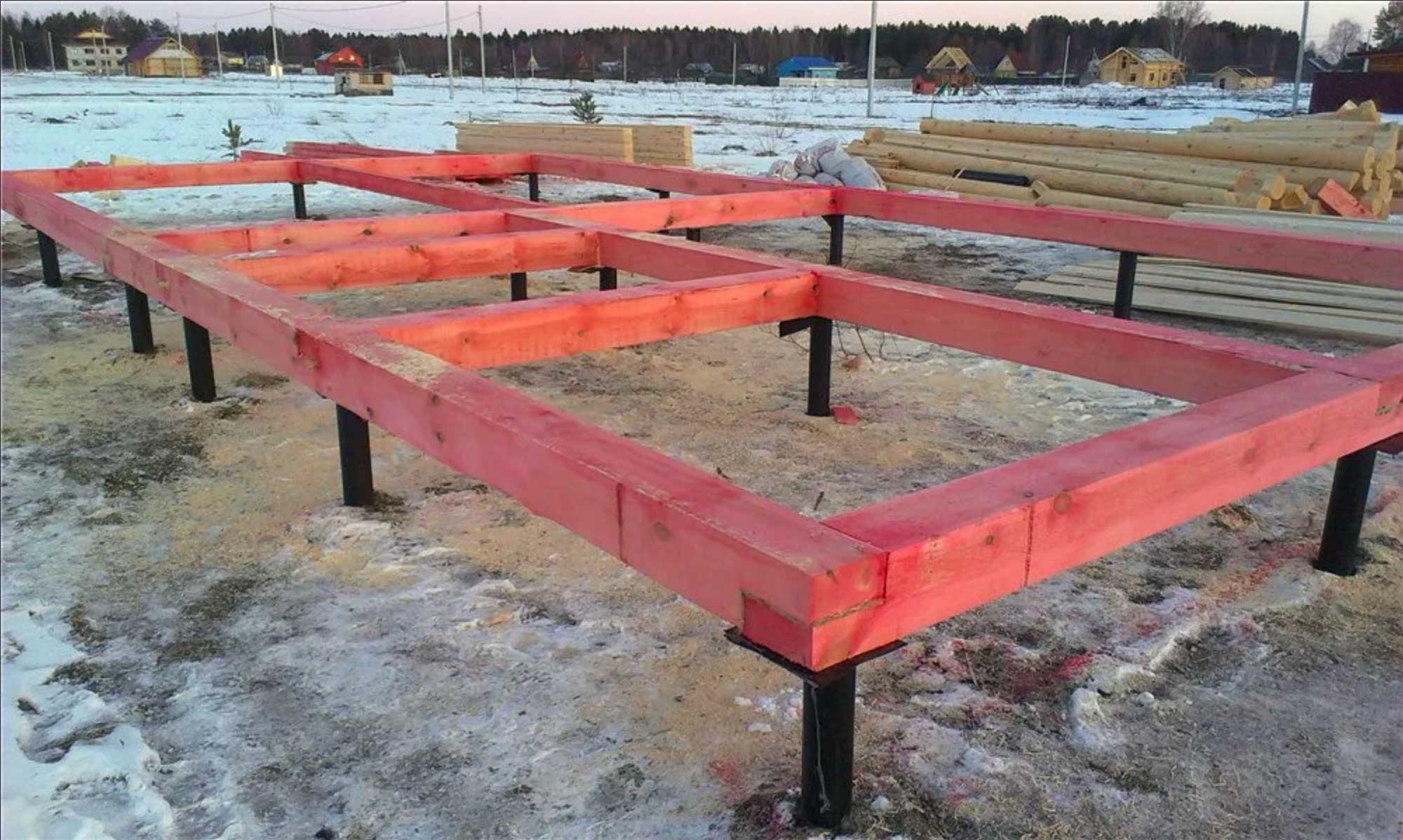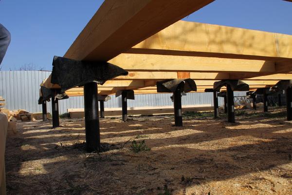 Сваный фундамент с обработанными лагами