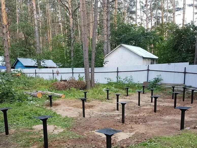 Свайный фундамент в лесу