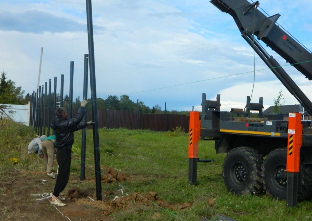 Монтаж свай для установки забора