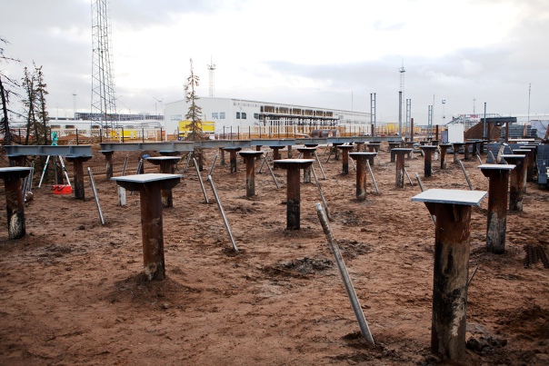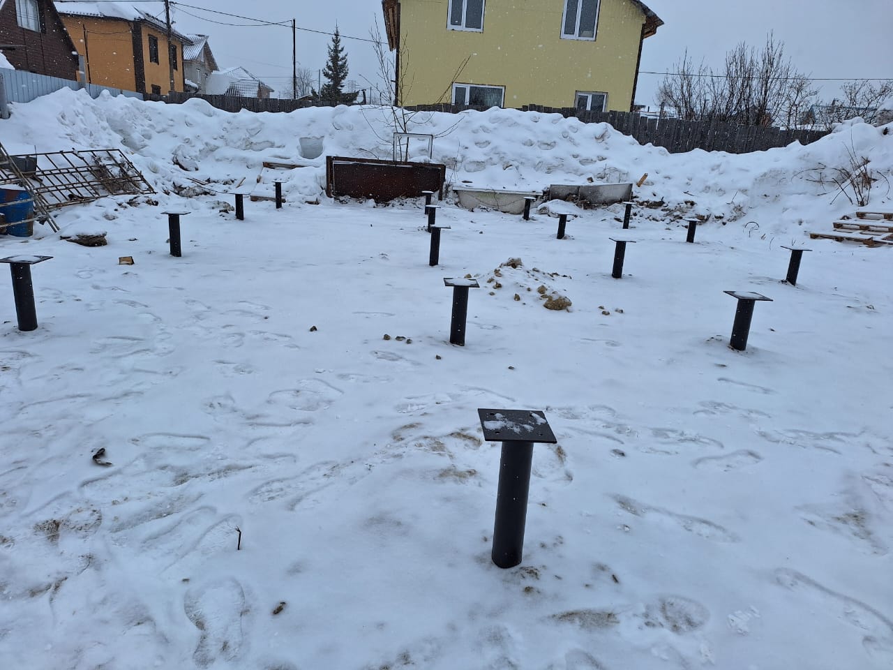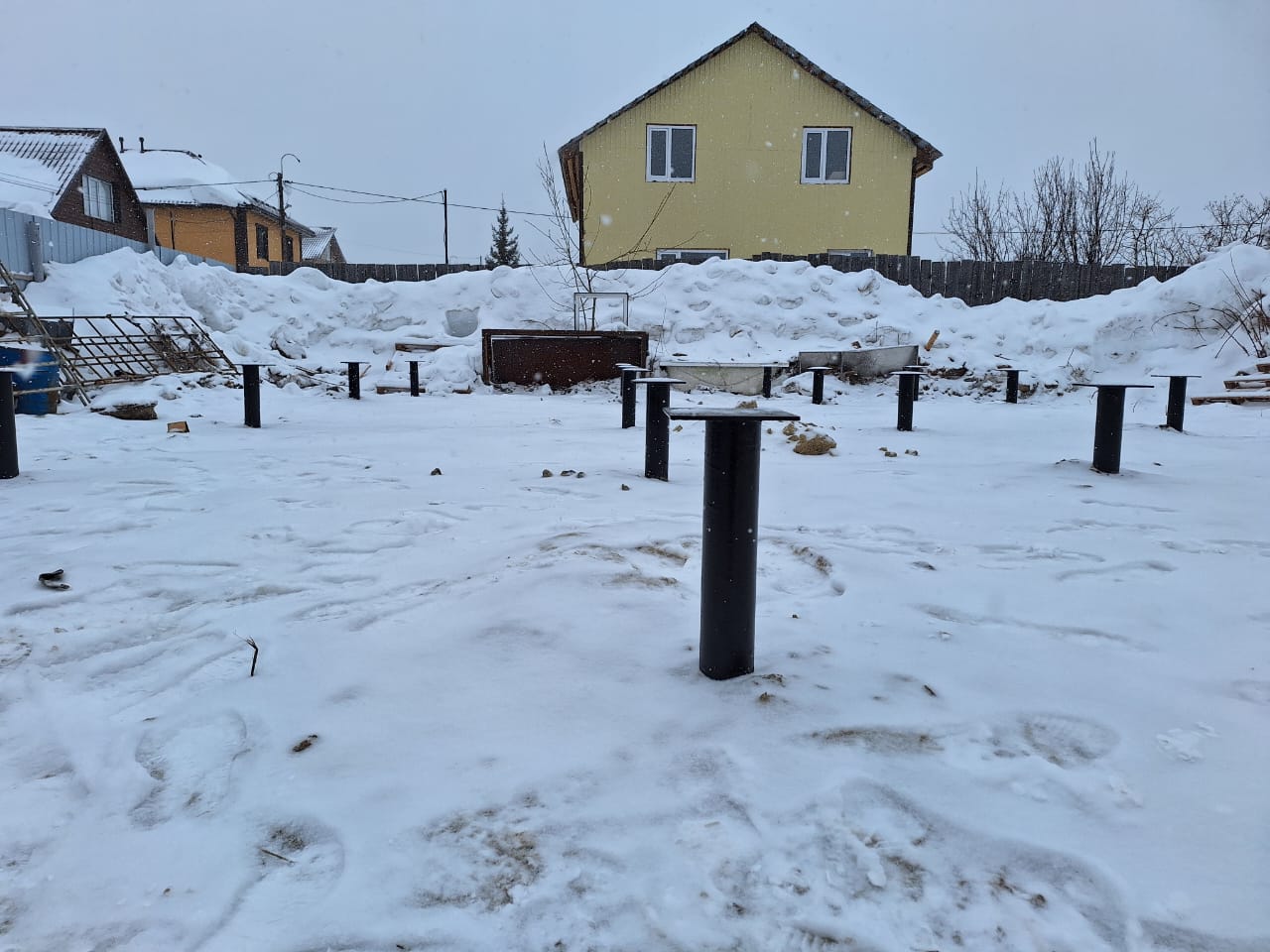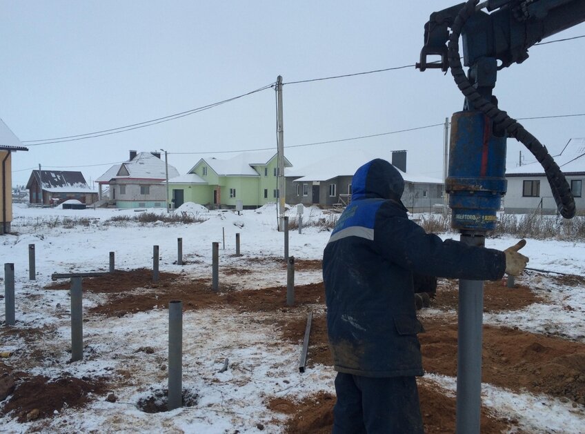 Зимний монтаж свайного фундамента